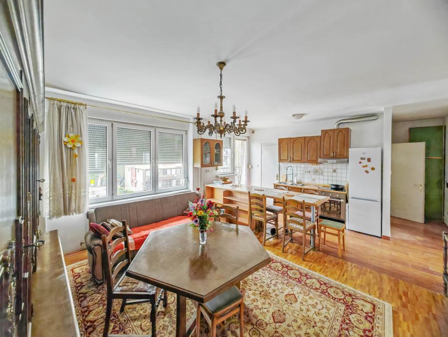 vrlo svjetao stan sa velikim prozorima na obije strane stana, dva balkona, špajza, opremljen sa svim potrebnim za život. renovirane instalacije - struja - voda - kanalizacija. optički internet. bez kućnih ljubimaca. 690 + 1400, 2 mjesečne najamnine unaprijed, prijava.