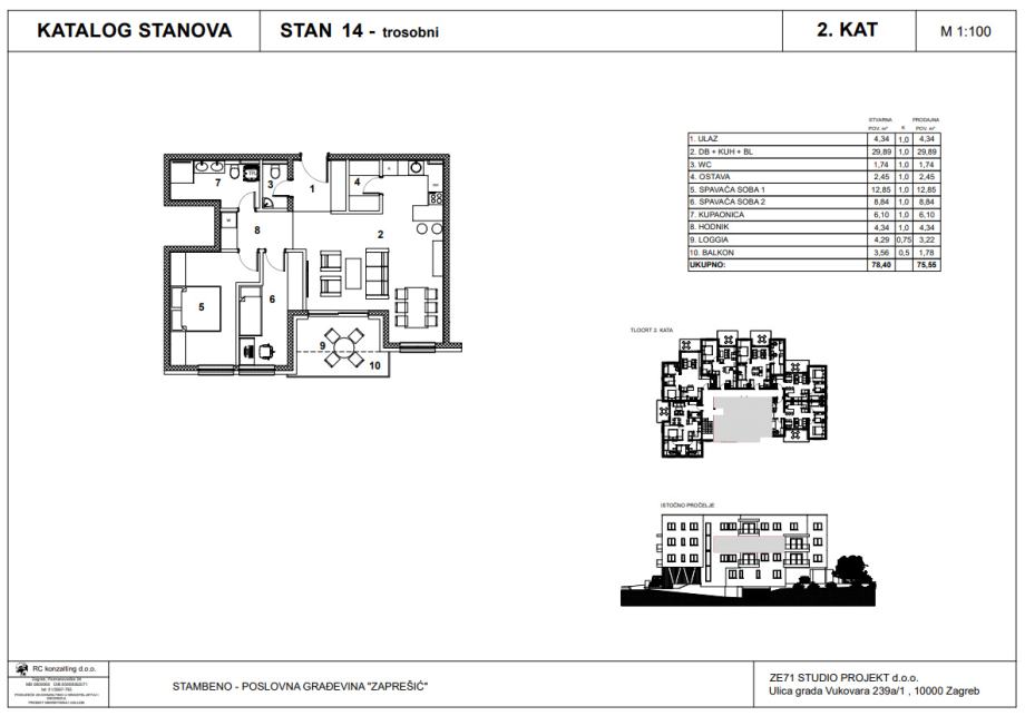Prodaje se trosobni stan S18 na 2. katu od 75.55 m2.