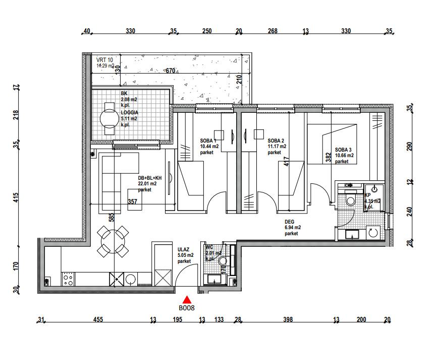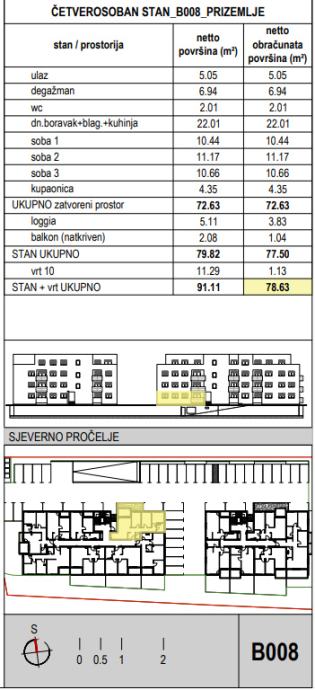 Stan se nalazi u sklopu projekta novogradnje. Projekt se u naravi sastoji od dva objekta sa zajedničkom garažom u kojoj se nalaze spremišta i garažna parkirna mjesta. U Zgradu A i B moguće je ući stepenicama ili liftom odmah iz podzemne garaže ili iz prizemlja s glavnog ulaza. Zgrada A sastoji se od 21 stana, a zgrada B od 29 stanova koji se nalaze na prizemlju, 1. katu, 2. katu i 3. katu. Zadnji kat izvesti će se kao uvučeni s većim terasama. Zgrade će biti izvedene kao dva odvojena kubusa zbog veće osunčanosti stanova te u svrhu smanjenja agresivne izgrađenosti koja utječe na okoliš.