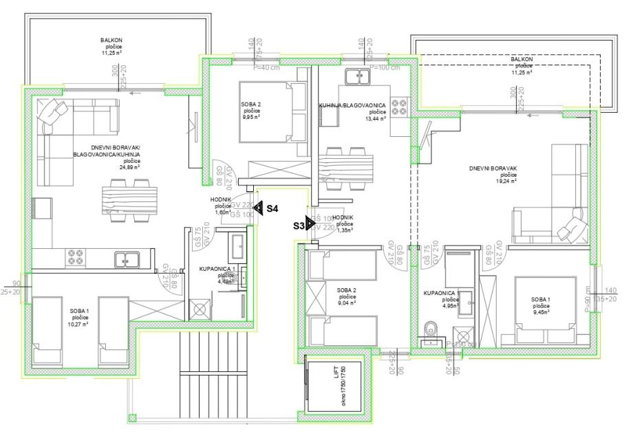 Orijentacija stana: sjever-jug. Dnevni boravak je okrenut prema jugu.