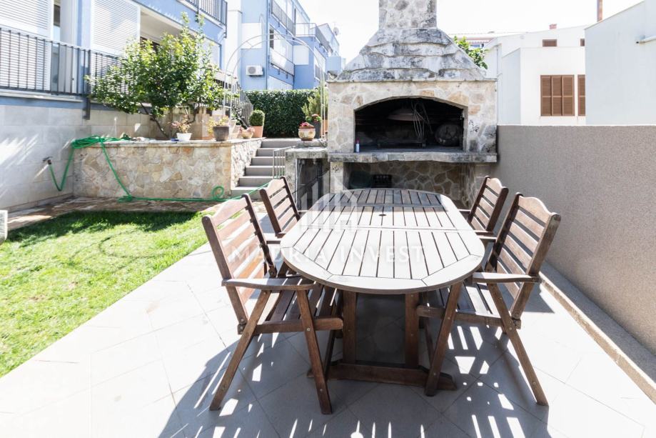 Stan se sastoji od: tri spavaće sobe, kuhinje sa blagovaonicom i dnevnim boravkom, kupaonice, wc-a, izbe, loggie te prekrasnog vrta od 150 m2.