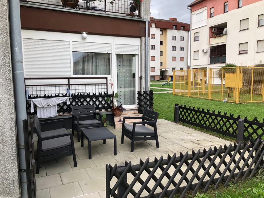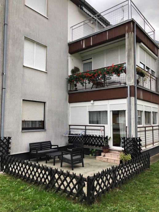Stan za prodaju, 78,34 m2, u potpunosti namješten, sastoji se od predsoblja, kuhinje s blagovaonicom, izbe, špajza, velikog dnevnog boravka, hodnika, 2 spavaće sobe, kupatila, + uređena vanjska terasa, dodatna pripadajuća šupa i parkirno mjesto. Tik uz zgradu nalazi se i dječje igralište, u blizini na pat min hoda su i obje osnovne škole, Dom zdravlja, pošta, Shoping centar i dr.