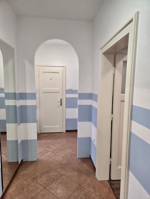 Stan, s kuhinjom, blagovaonom, i tri velike sobe, smjesten na prvom katu, orijentacije sjever- jug.