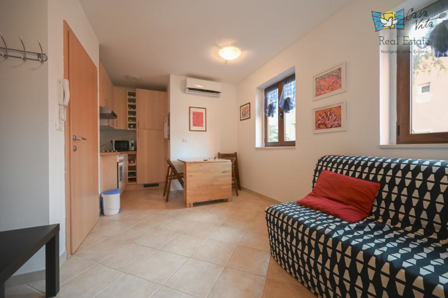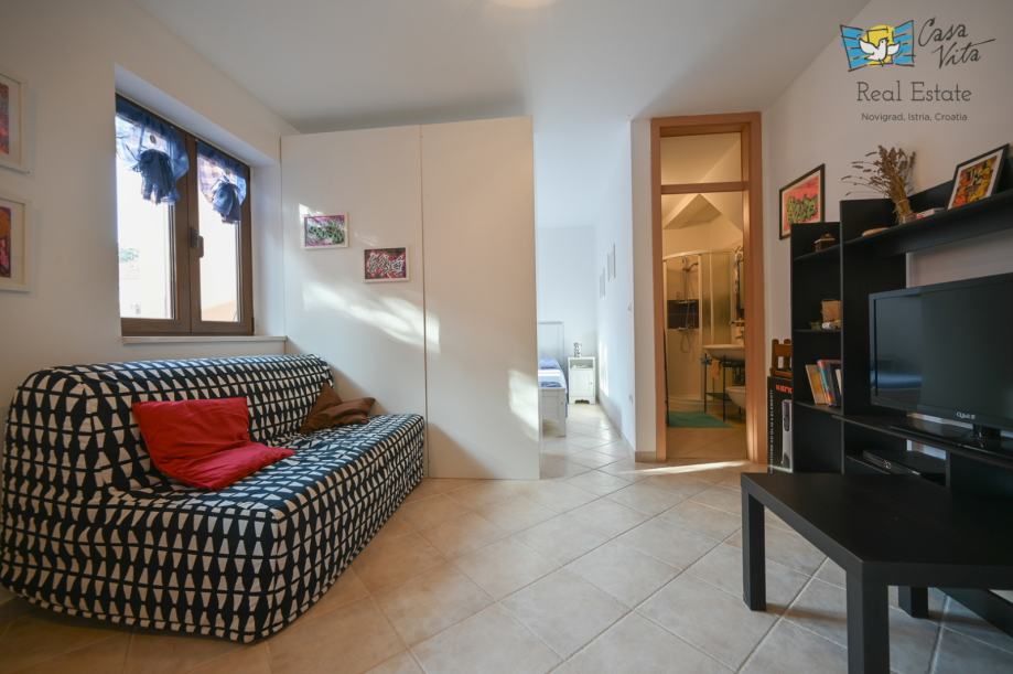 U ponudi je garsonijera površine 28 m2 smještena na prvom katu stambene zgrade s ukupno tri etaže, izgrađene 2009. godine, u atraktivnom dijelu Novigrada.