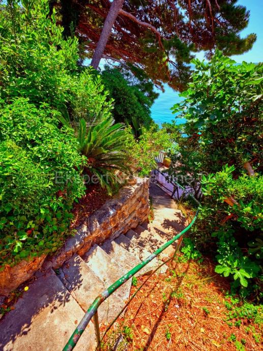 Parcela od 570 m2 s južne strane gleda na more sa vlastitom kapijom koja izlazi direktno na plažu. Sa sjeverne strane parcele prolazi javna lokalna prometnica širine veće od 3 metra za kolni pristup na 4 parkirna mjesta koja se nalaze na parceli.