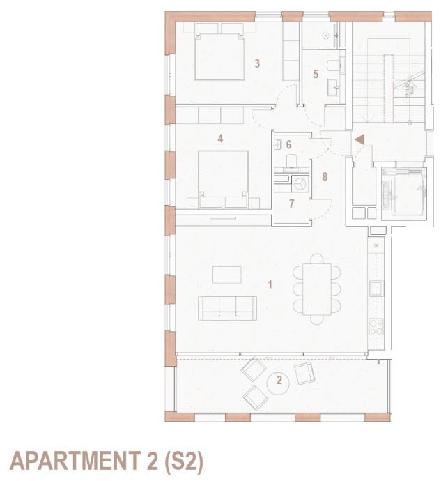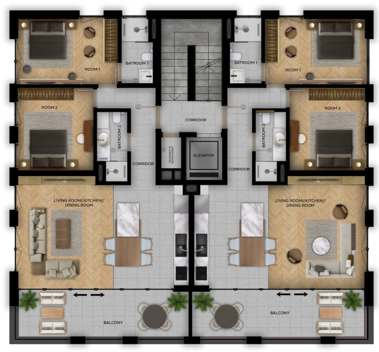 Svi stanovi imaju površinu od 90 m², sadrže dvije udobne spavaće sobe i odlikuju se trostranom orijentacijom, što im osigurava obilje prirodne svjetlosti i osjećaj prostranosti tijekom cijelog dana.