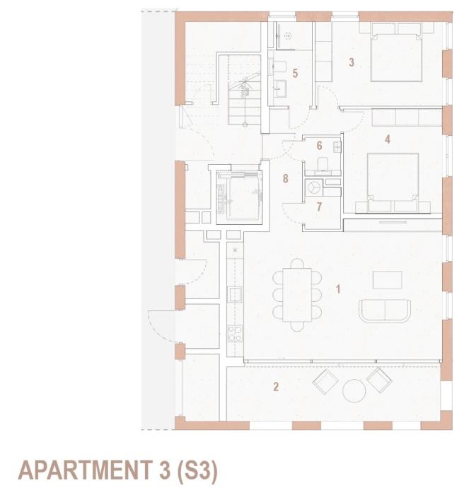 U svakoj zgradi nalazi se devet moderno projektiranih stanova s dvije spavaće sobe, raspoređenih od prizemlja do četvrtog kata.