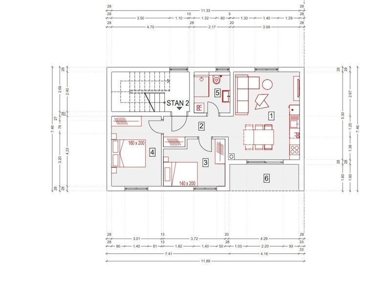 Na prodaju je moderan stan na prvom katu nove urbane vile! Stan se sastoji od prostranog dnevnog boravka s kuhinjom i blagovaonicom, dvije spavaće sobe, kupaonice i terase. U cijenu je uključeno jedno parkirno mjesto u dvorištu zgrade. Svaki stan ima električno podno grijanje u kupaonici, a u dnevnom boravku i glavnoj spavaćoj sobi bit će inverterske klima jedinice. Stan je vrlo sunčan i dizajniran za maksimalnu funkcionalnost i ugodno stanovanje.