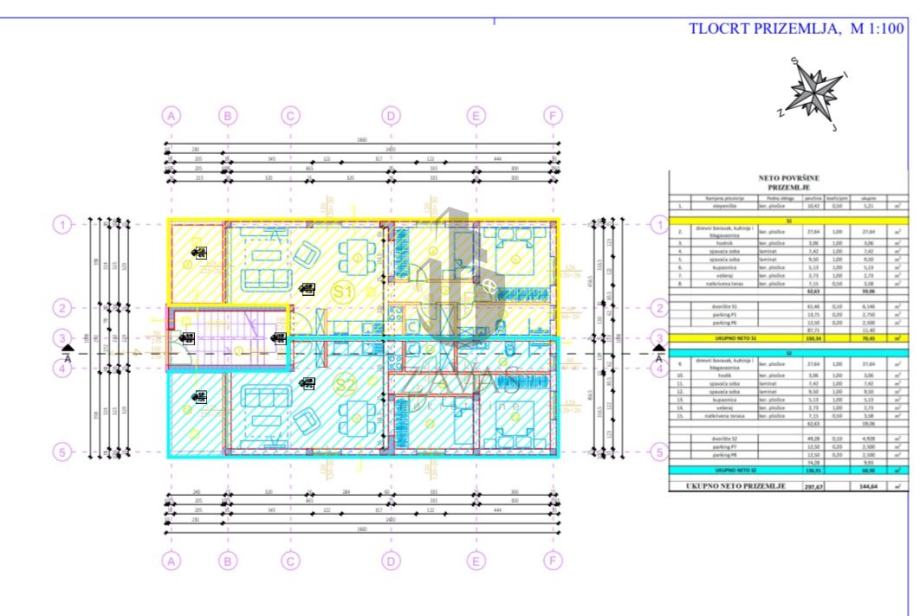 Zgrada s 4 apartmana, svaki sa 2 parkirna mjesta.