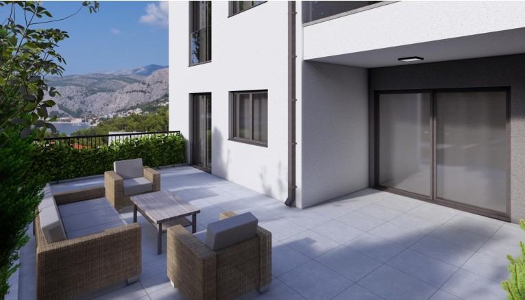 Omiš , Nemira, stan na trećem katu, s panoramskim pogledom ukupne površine 45m2 sastoji se od dnevnog boravka, kuhinje i blagovaonice, jedne spavaće sobe, kupatila i balkona.