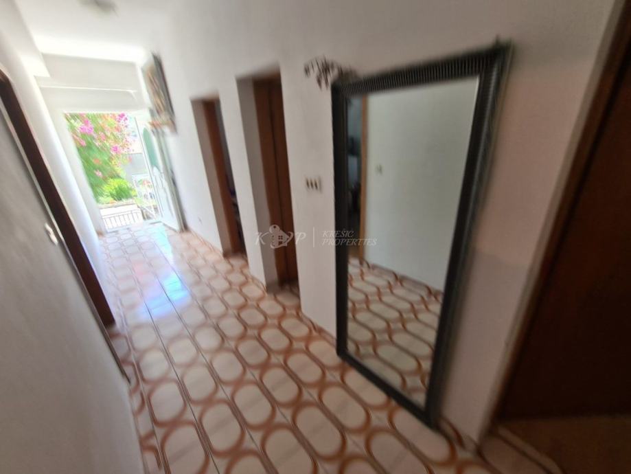 U prizemlju se nalazi trosobni stan sveukupne površine od 103m2 kojem pripada i dva vanjska parking mjesta.