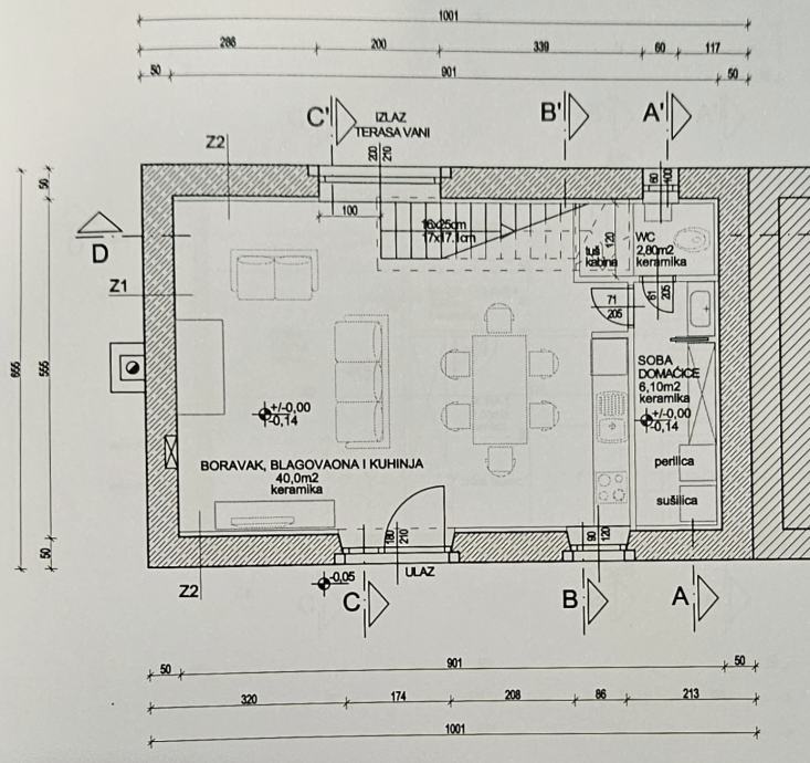 U prilogu su arhitektonski nacrti moguće tlocrtne organizacije kuće.