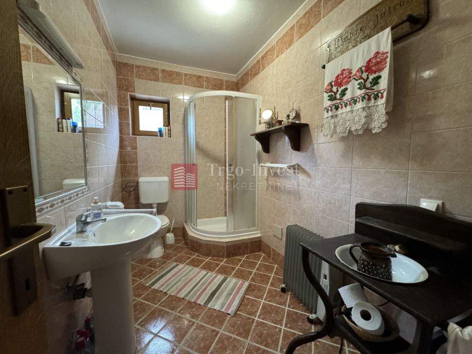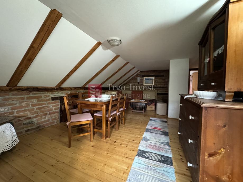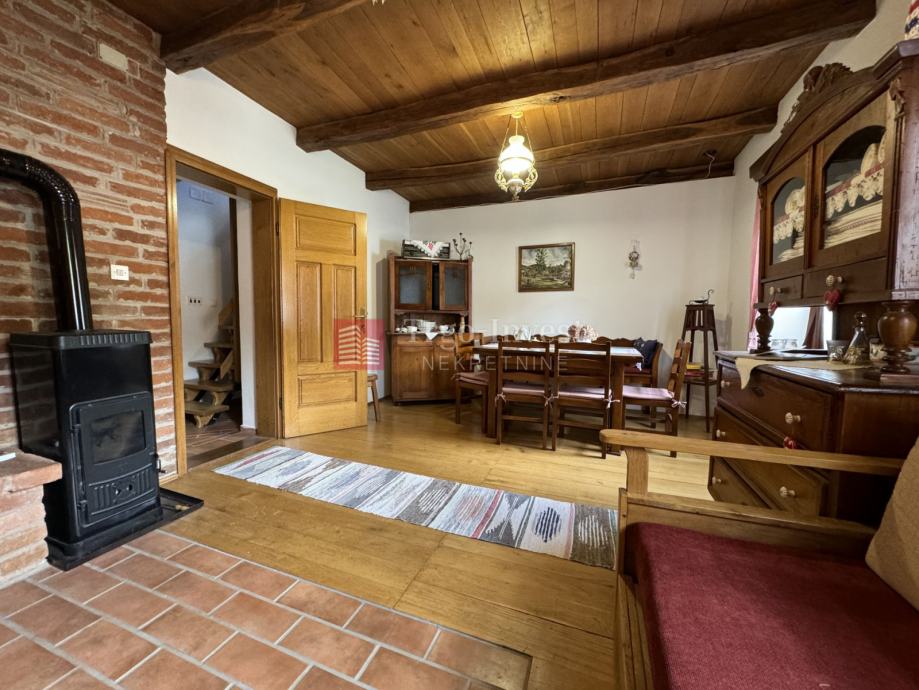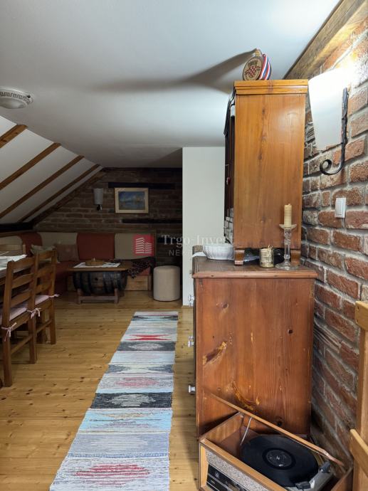 STAMBENI DIO (cca 165 m²): Prizemlje (cca 85 m²) – apartman s ulaznim hodnikom, spavaćom sobom, dnevnim boravkom i blagovaonicom s kaminom i peći na drva, kuhinja/blagovaonica, kupaonica s bojlerom. Kat (cca 80 m²) – dnevni prostor sa šankom, blagovaonica, dnevna soba, tri spavaće sobe, kupaonica, dvije klime i peć na drva.