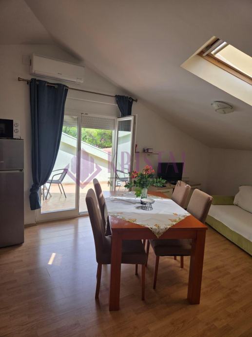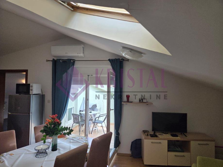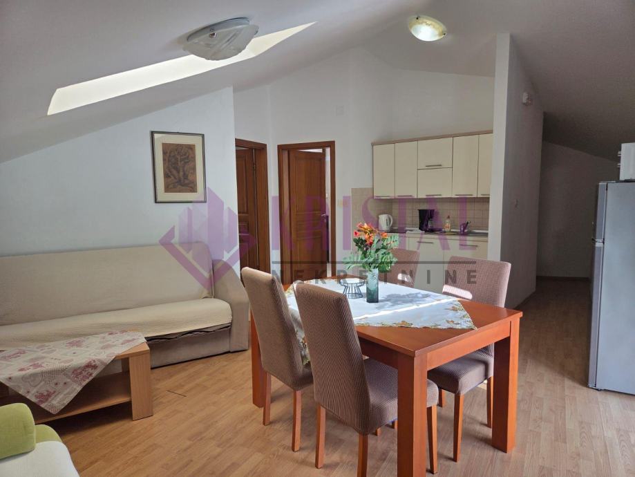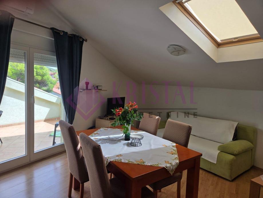 Prodaje se 3-soban namješten apartman površine 60.85 m2 u potkrovlju kvalitetne stambene zgrade koja se nalazi 1.red uz more.