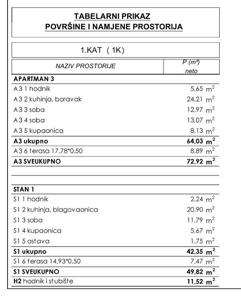 Prodaje se trosobni apartman (A3) površine 72,92 m2 na I katu moderne novogradnje blizu mora u Staroj Novalji.