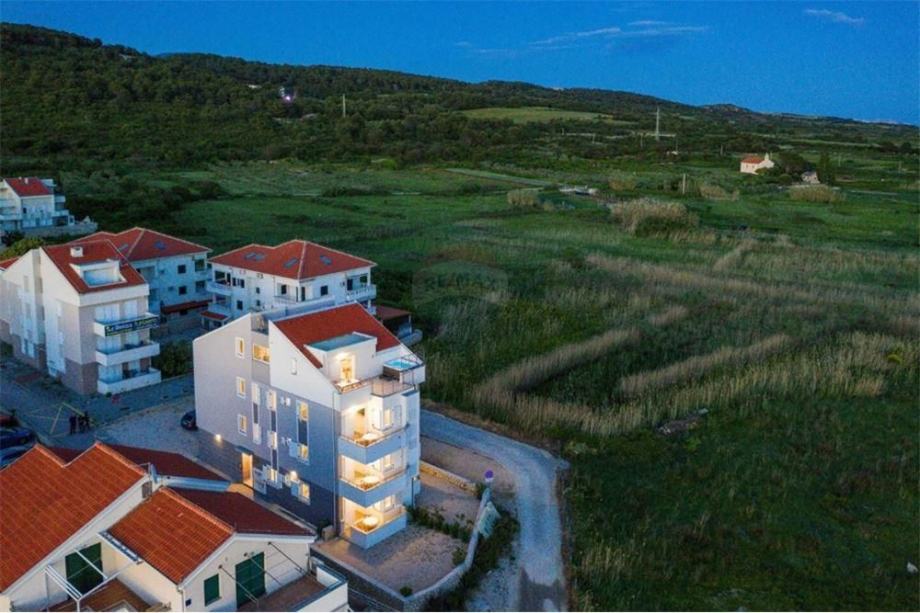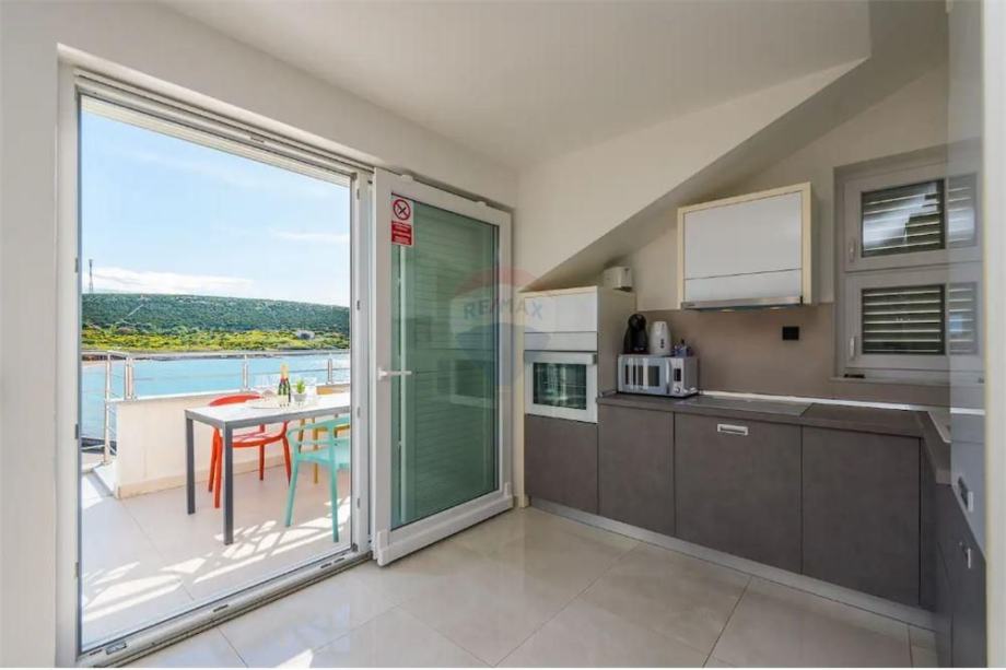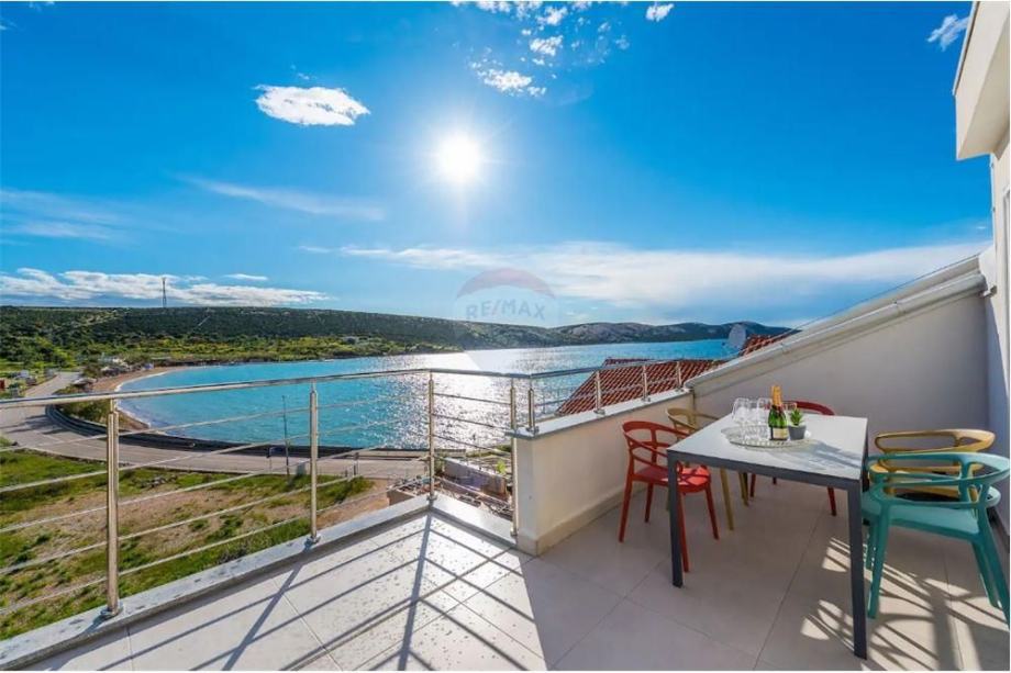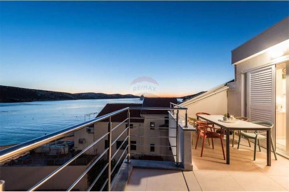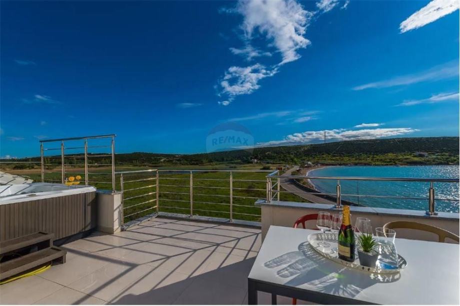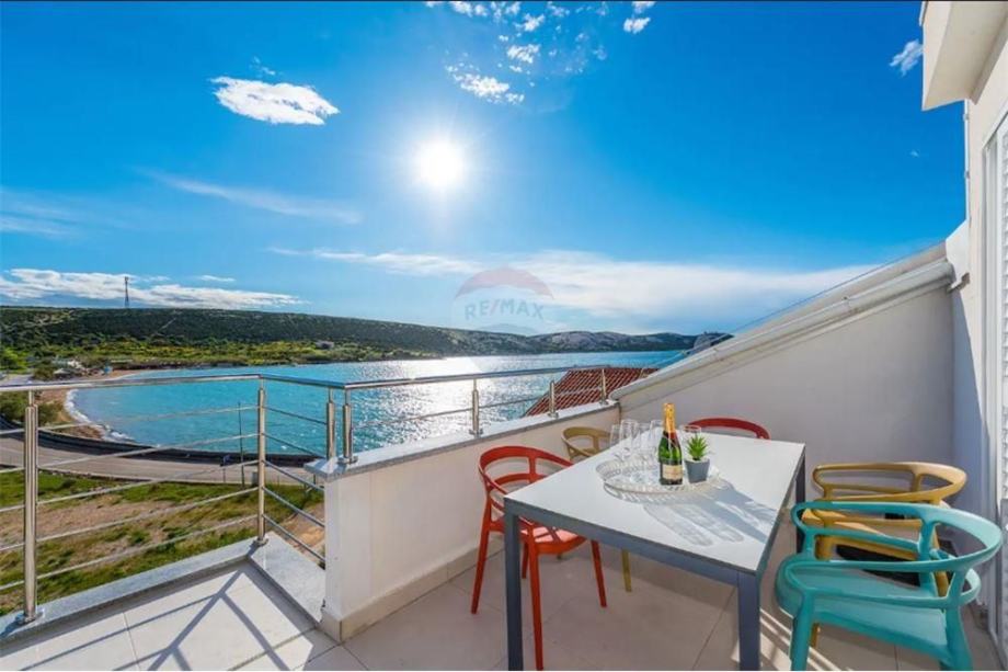 Prodaje se apartman u Staroj Novalji na otoku Pagu, prvi red do mora, pored plaže Planjka. Apartman veličine 41.25 m2 nalazi se na trećem katu stambene zgrade sa ukupno 8 jedinica. Sastoji se od: