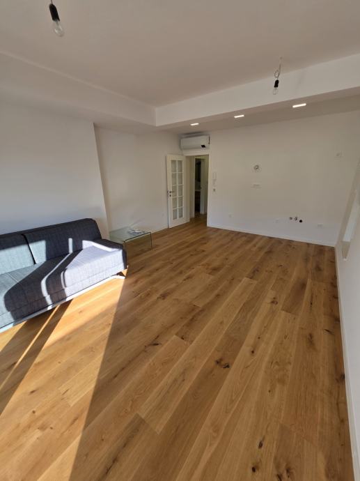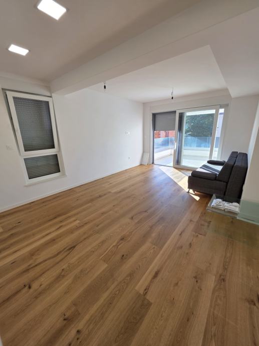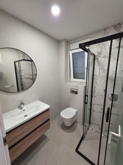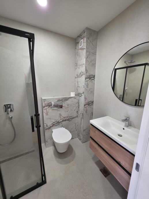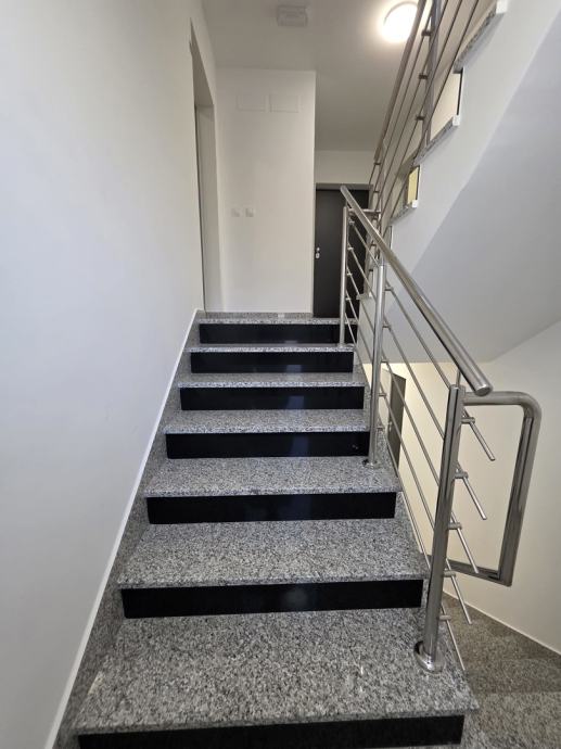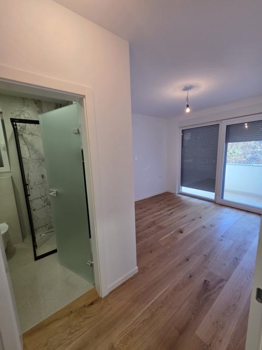Apartman se nalazi u visokom prizemlju moderne zgrade izgrađene 2023. godine, dok jugozapadna orijentacija omogućava predivan pogled na more s puno prirodne svjetlosti.