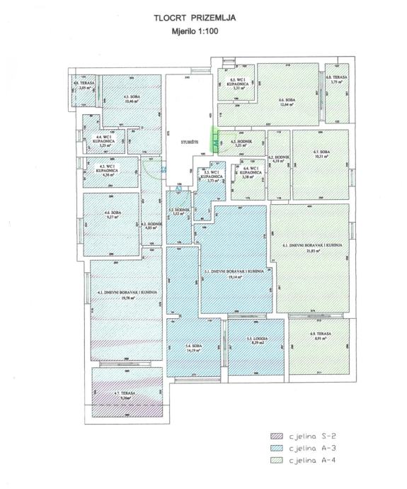 Na prodaju je prostrani trosoban apartman oznake A4 neto površine 74.14 m2 smješten u mirnom dijelu Stare Novalje.