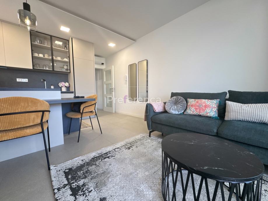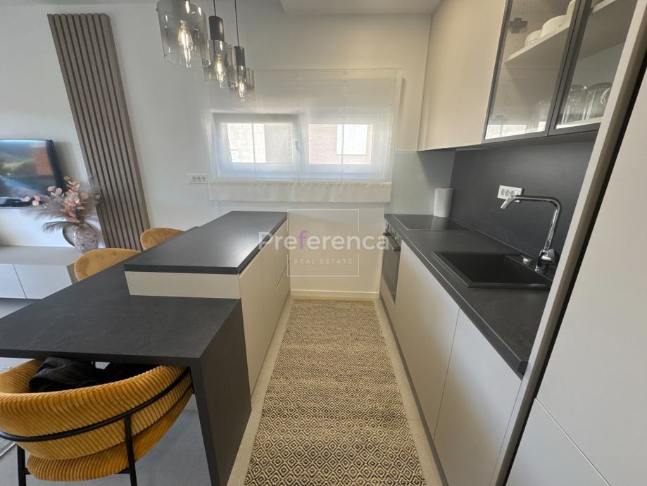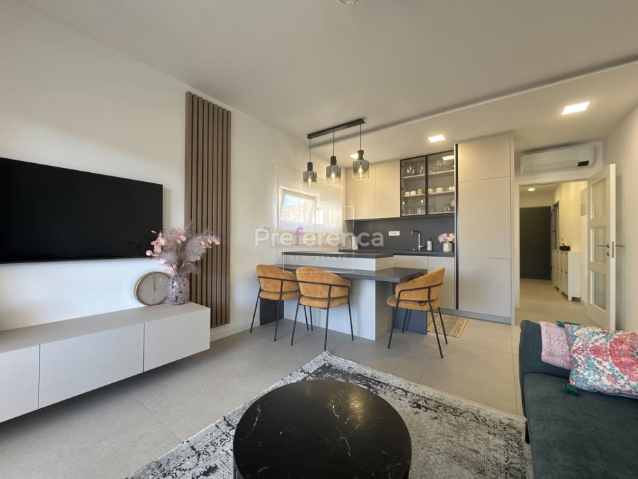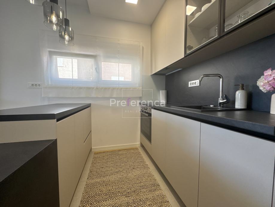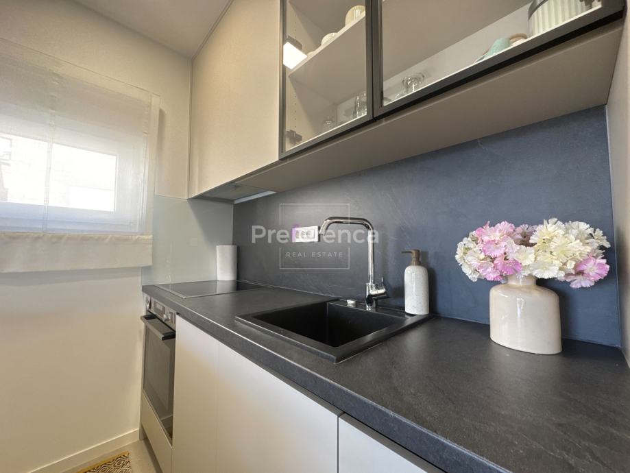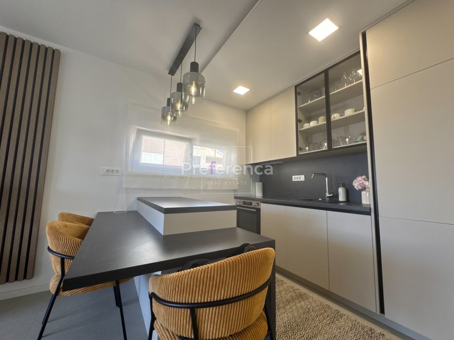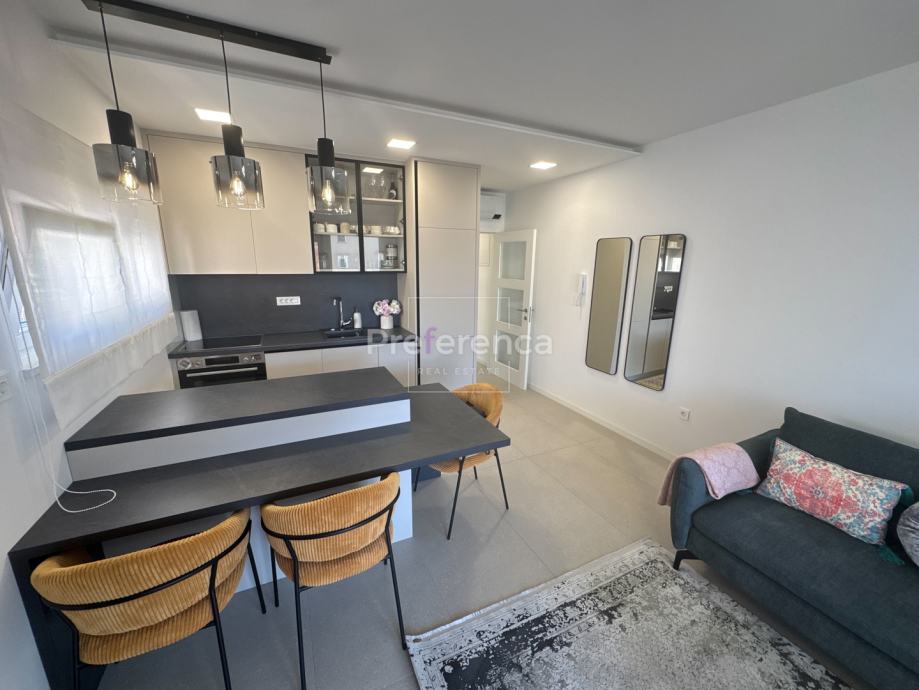 Iz dnevnog boravka izlazi se na natkrivenu terasu sa koje su pruža pogled na more, master spavaća soba ima vlastitu terasu i kupaonicu. Aluminijske rolete na svim otvorima sa elektropodizačima, vrhunski parket na podovima. Zgrada se nalazi u drugom redu do mora, privatan pristup do plaže omogućen svim stanarima zgrade.