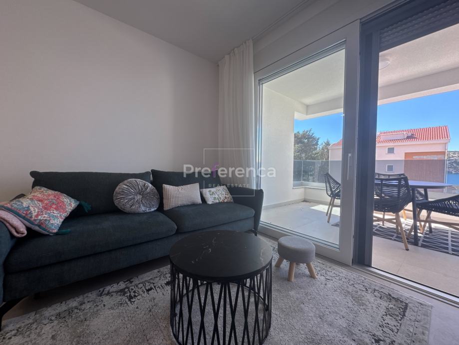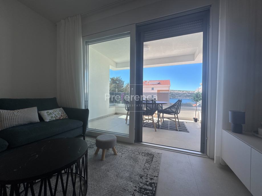 Na prodaju je prekrasan 2-sobni apartman površine 66,80 m2 smješten u mirnom dijelu Stare Novalje. Apartman se nalazi na visokom prizemlju modernog objekta izgrađenog 2022. godine, a njegova jugozapadna orijentacija omogućava obilje prirodne svjetlosti i prekrasan pogled na more. Ukupna brutto korisna površina stana je 90,56m2, pripadaju mu dva parkirna mjesta i spremište u suterenu zgrade. Sastoji se od ulaznog hodnika, dvije spavaće sobe, dvije kupaonice, dnevnog boravka/kuhinje/blagovaonice i dvije terase. Sve prostorije su klimatizirane, stan se prodaje potpuno namješten.