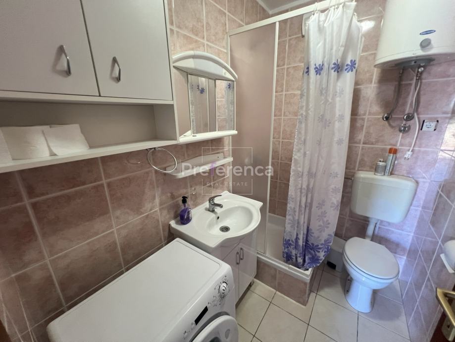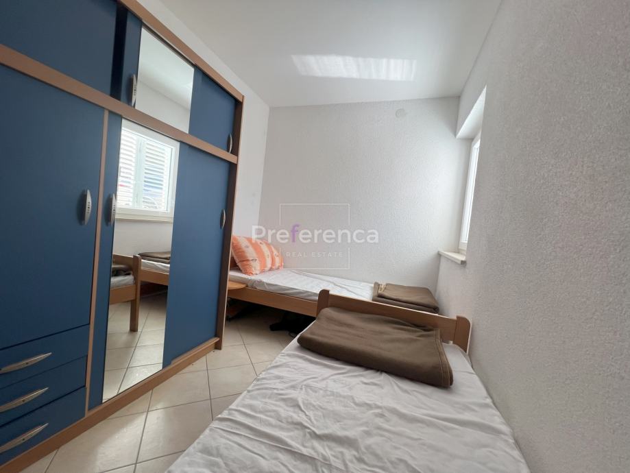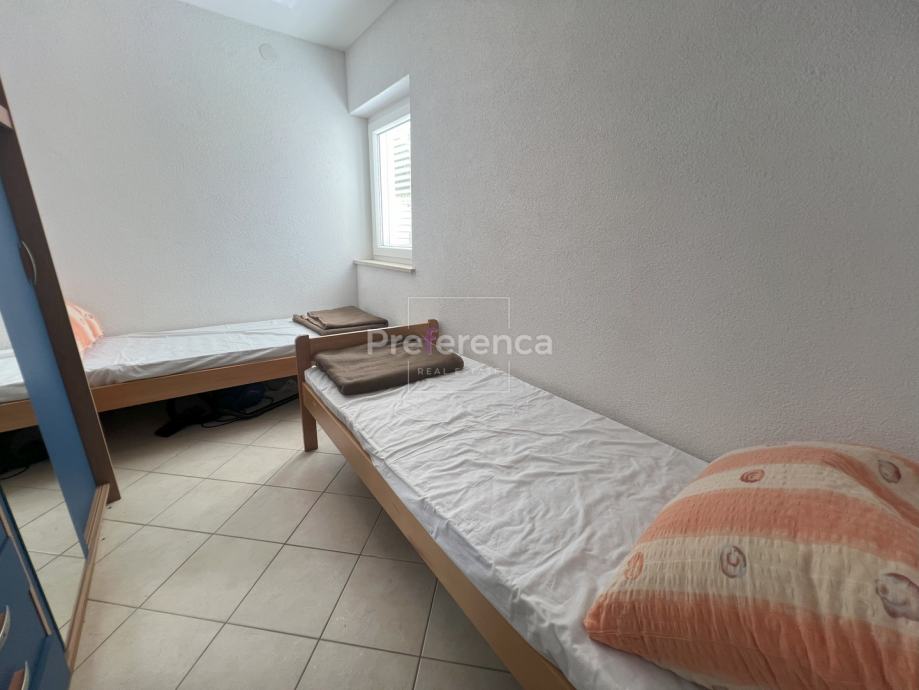 Stan pruža ugodan boravak s prekrasnim pogledom na more, što ga čini savršenim odabirom za ljubitelje prirode i mirnog okruženja. Stan je orijentiran prema sjeverozapadu, pružajući obilje prirodne svjetlosti tijekom dana. Nalazi se u zgradi sa ukupno 15 stambenih jedinica.