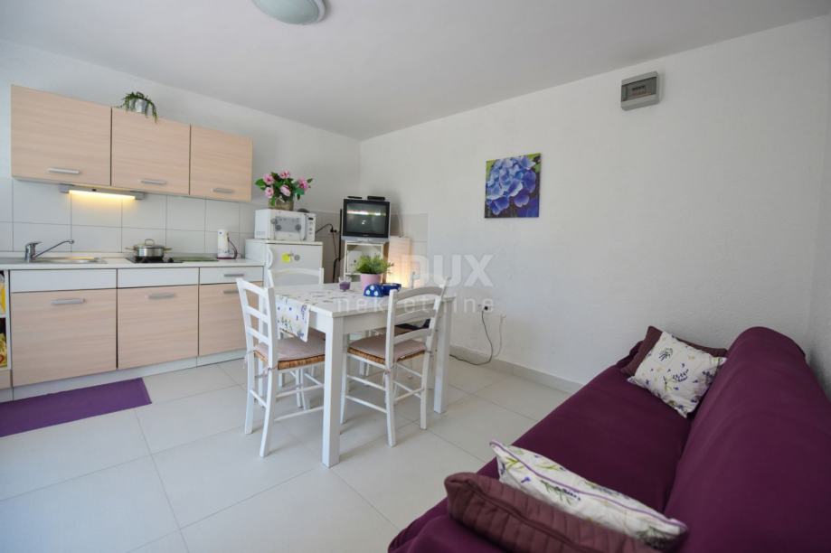 Stara Novalja - kuća koja u prizemlju ima apartman površine 50 m2, a sastoji se od spavaće sobe, kupaonice i kuhinje s blagovaonom s izlazom na veliku terasu.