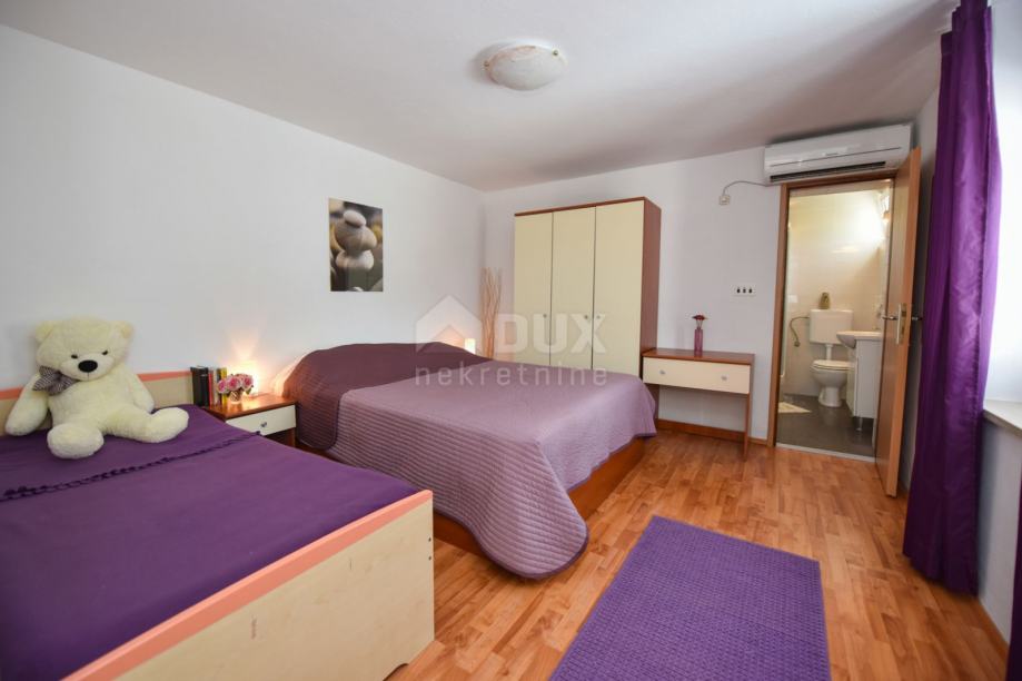 Kuća nije prvi red do mora, ali ima izlaz na šetnicu. Građena je 60-tih godina, dobro održavana i djelomično adaptirana.
