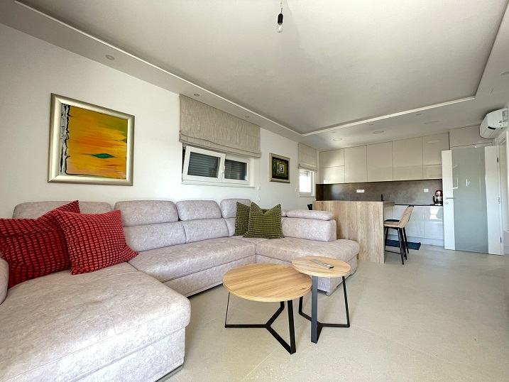 Sastoji se od dnevnog boravka i kuhinje, dva hodnika, 2 kupaonice s wc-om, dvije spavaće sobe i tri terase (20,41 m2, 0,88 m2 i 4,11 m2) s pogledom na more.