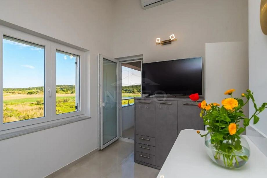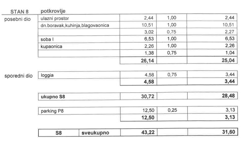 Prodaje se penthouse apartman (S8) ukupne neto površine 31,60 m2 s manjom terasom i pogledom na Novaljsko polje.
