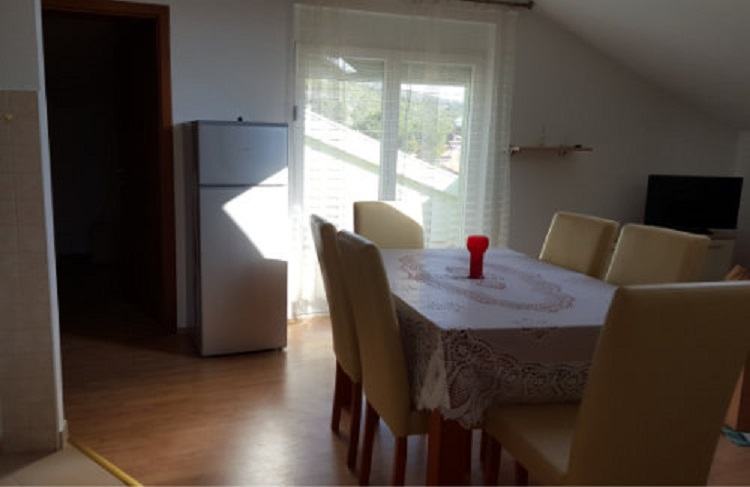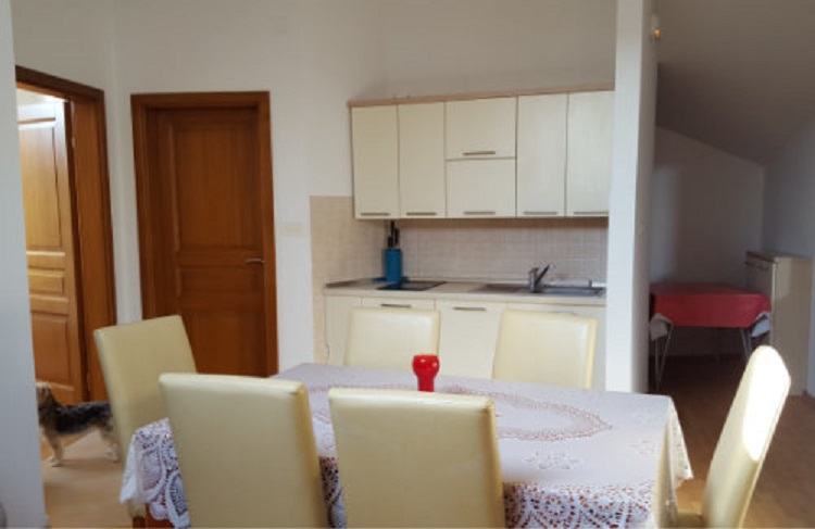 Ima dvije spavaće sobe, dnevni boravak, kuhinju, kupaonicu i terasu s pogledom na more.