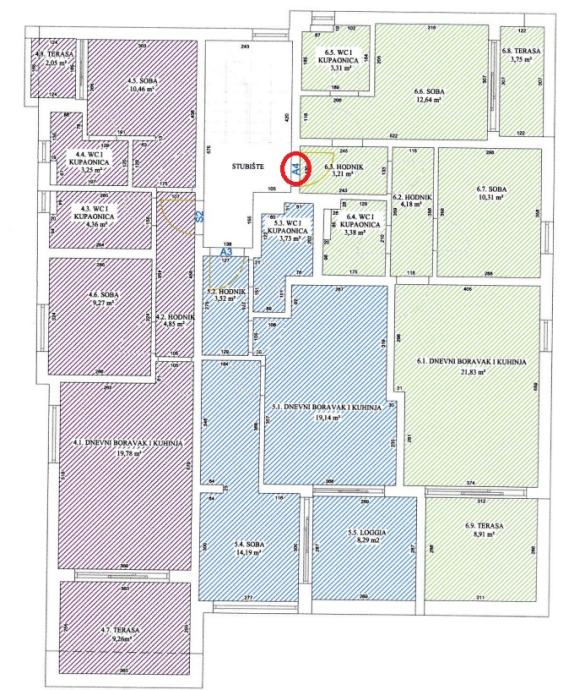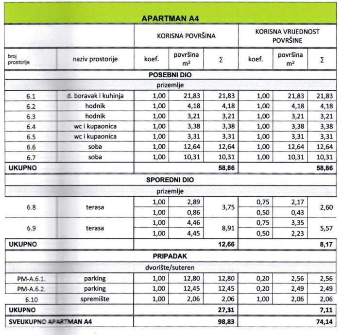 Pripadaju mu i 2 parkirna mjesta te spremište u prizemlju površine 2,06 m2.