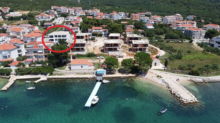 Sastoji se od dnevnog boravka i kuhinje, dva hodnika, 2 kupaonice s wc-om, 2 spavaće sobe i 2 terase (5,57 m2 i 2,60 m2) s pogledom na more.