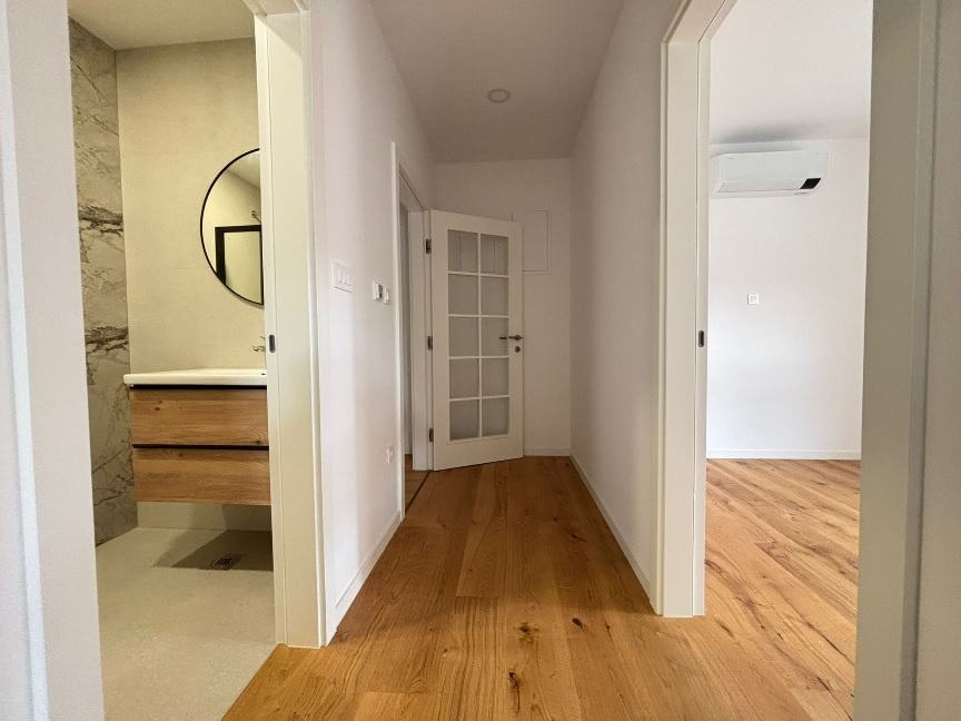 Apartman je klimatiziran. Ima podno grijanje u kupaonicama. Protuprovalna vrata. Portafon. Nije namješten.