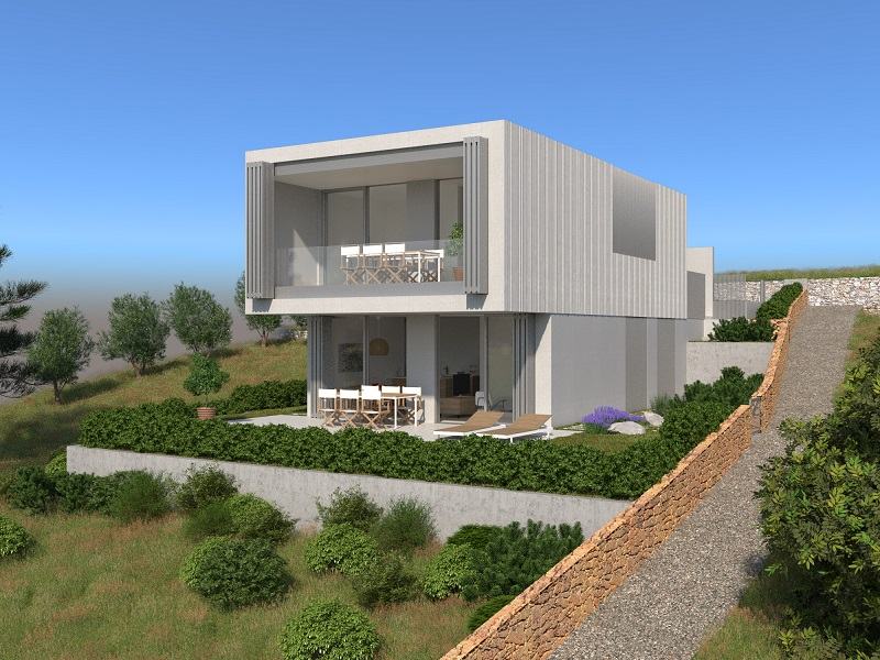 PVC stolarija – tip kao SCHÜCO ASS 70 HI, AWS 70 HI i ADS 90 SI Staklo: IZO 4+16+4+16+4= 44 mm (low-e). Zaštita od sunca roletama s elektromotorom i ručnim pogonom + komarnici.