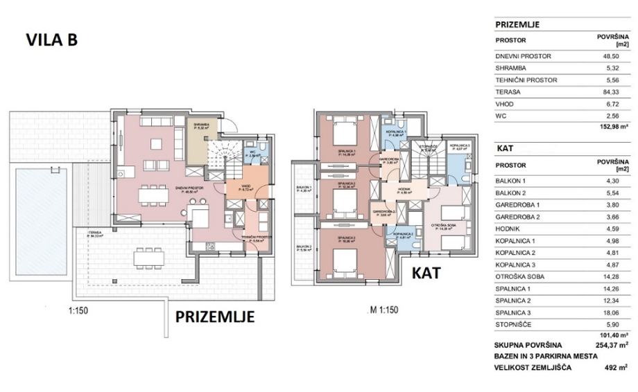 Vilu okružuje dvorište površine 492 m2 gdje se nalazi bazen i 3 parkirna mjesta.