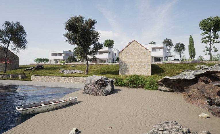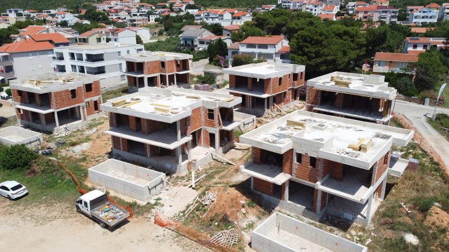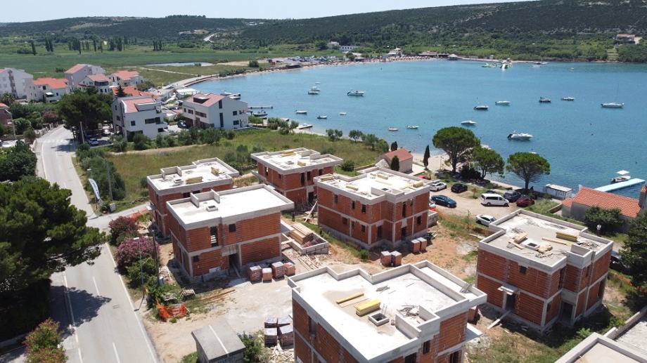 Prodaje se luksuzna vila (B) s bazenom u izgradnji na izuzetnoj lokaciji, samo 10 metara od plaže, 1. RED DO MORA u Staroj Novalji, predio Sveta Marija.