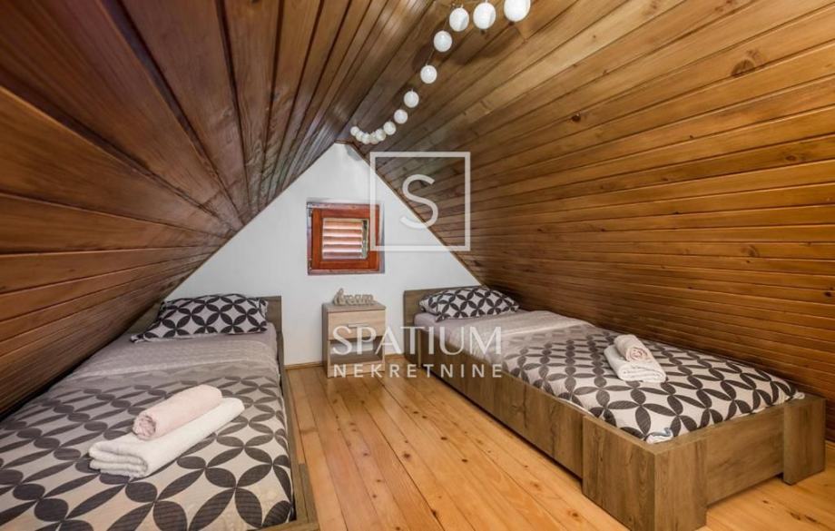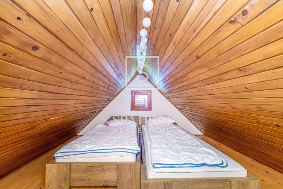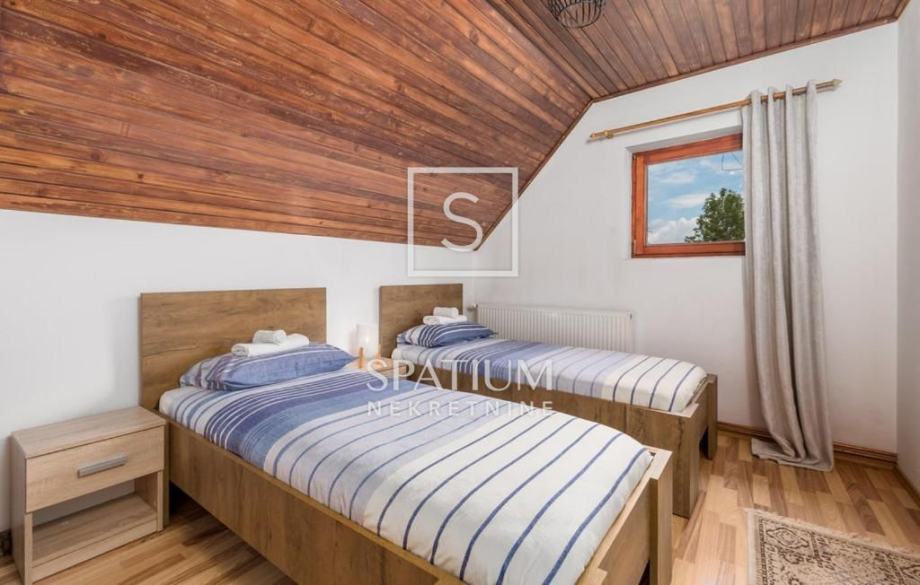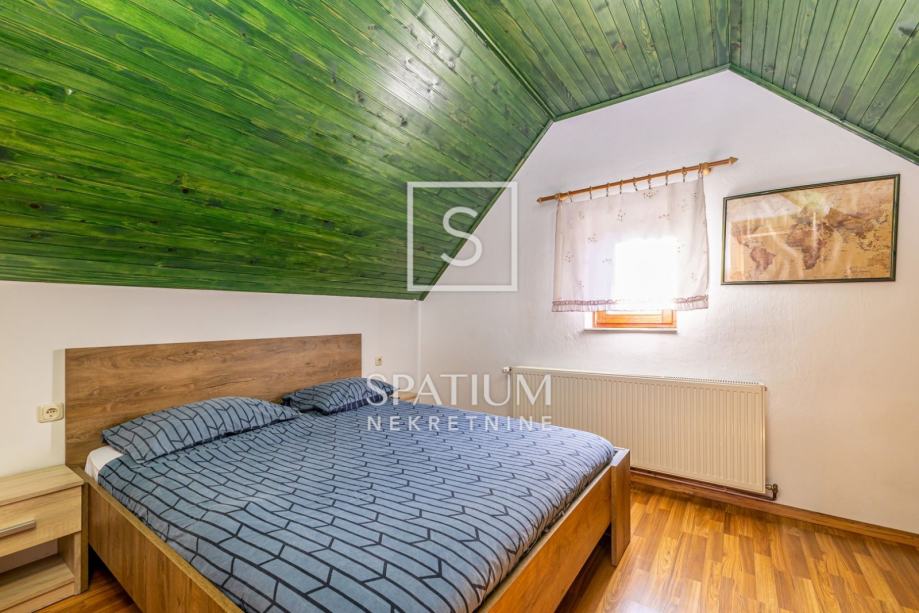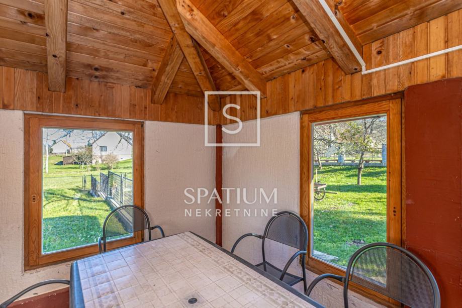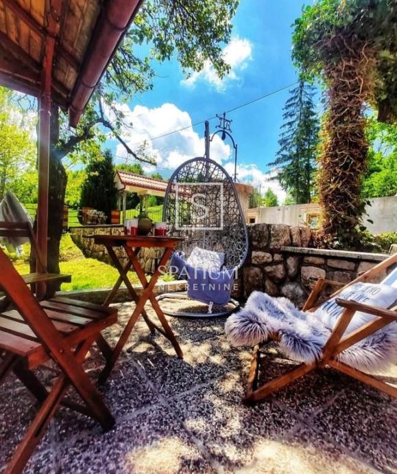 STARI LAZ, u ponudu smo dobili autohtonu kuću 101 m2 u lijepom gorskom okruženju na parceli od 6920 m2. Sastoji se od prizemlja, kata i potkrovlja. U prizemlju se nalazi kuhinja, dnevni boravak s blagovaonicom i kupaonica. Unutarnje stubište vodi na prvi kat gdje se nalaze tri spavaće sobe i kupaonica,te je u potkrovlju još jedna spavaća soba. Na okućnici se nalazi ljetna kuhinja, vanjski kamin, kućica s jacuzzijem, vanjsko spremište, garaža, te prostrani teren za razne slobodne aktivnosti. Toplina objekta osigurana je centralnim grijanjem na palete, a prodaje se opremljena i namještena. Popločani dio dvorišta osigurava dovoljno parkirnih mjesta. Uz postojeću kuć u nalazi se spremište od 11 m2, te su izvedeni betonski temelji površine 95m2 . Uz parcelu se nalazi 780m2 građevinskog zemljišta koji se također može kupiti i odvojeno. Ova nekretnina nudi veliki potencijal za razne mogućnosti, idealna je prilika za obiteljsko uživanje kao i za ulaganje u turističku djelatnost ili agroturizam.