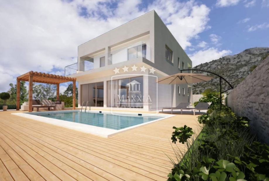 idealno uklopljenu u mediteranski krajolik. Ova sofisticirana vila prostire se na zemljištu od 485 m² te je projektirana kao savršen spoj estetike, komfora i funkcionalnosti.