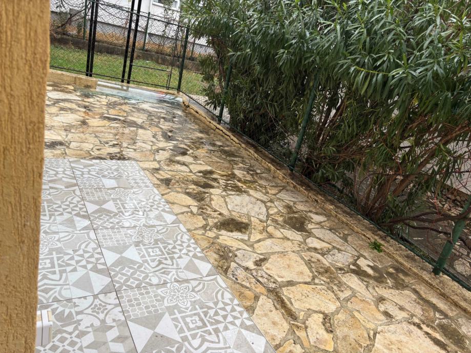 Stan je ukupne korisne površine 75m2 i nalazi se u prizemlju stambene zgrade. Čine ga hodnik, 2 kupaonice, 2 spavaće sobe, kuhinja, blagovaonica i dnevni boravak. Stan ima 45m2 ograđenog dvorišta stoga ima ulaz kroz zgradu, ali i zasebni, dvorišni ulaz sa kapijom od kovanog željeza na zaključavanje. Dvorište je popločeno prošle godine, ima odvod i vanjsku slavinu.