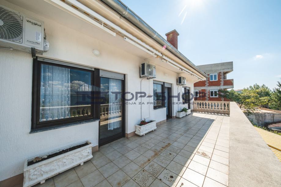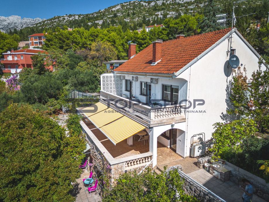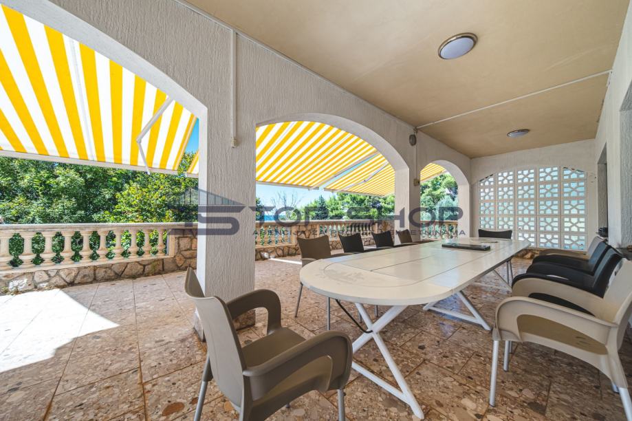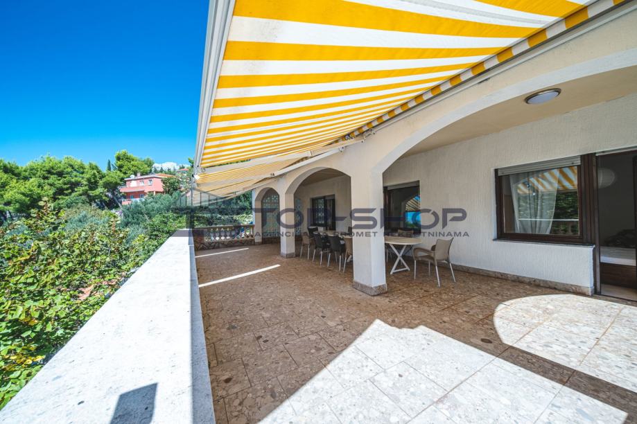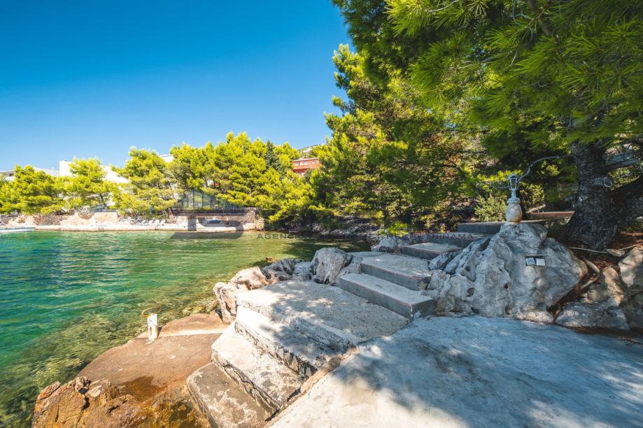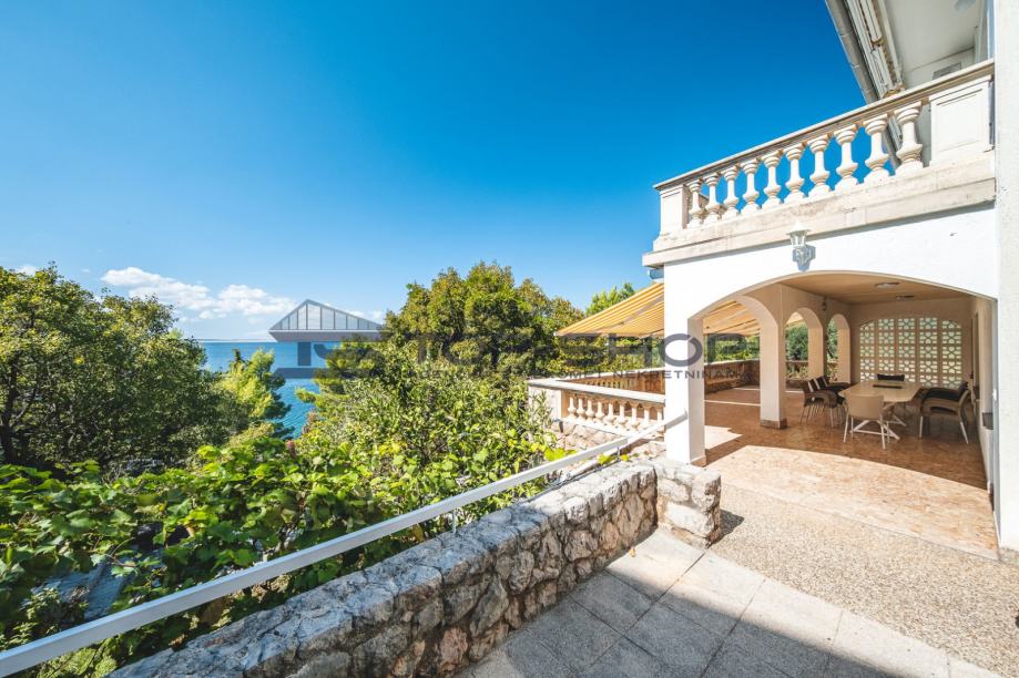 Kuća ima predivnu okućnicu te tri velike terase s panoramskim pogledom na more, roštilj, dvije garaže i vlastiti prilaz moru ( svega 40-ak metara od mora ).