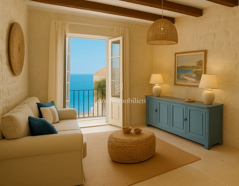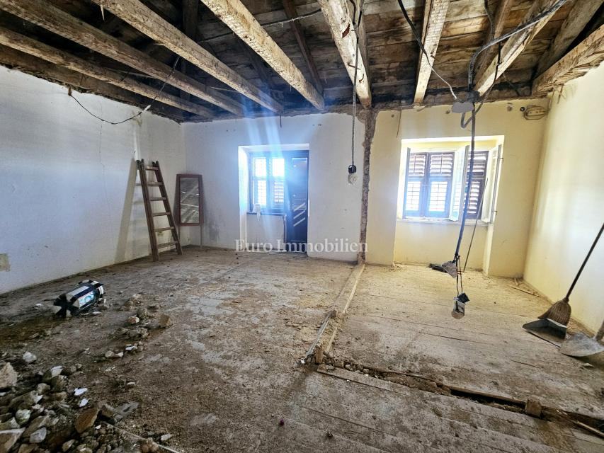 Udaljena samo 10 metara od mora, prodaje se kuća u nizu. Trenutno se prizemlje sastoji od hodnika, kuhinje, kupaone, dnevnog boravka te jedne spavaće sobe.