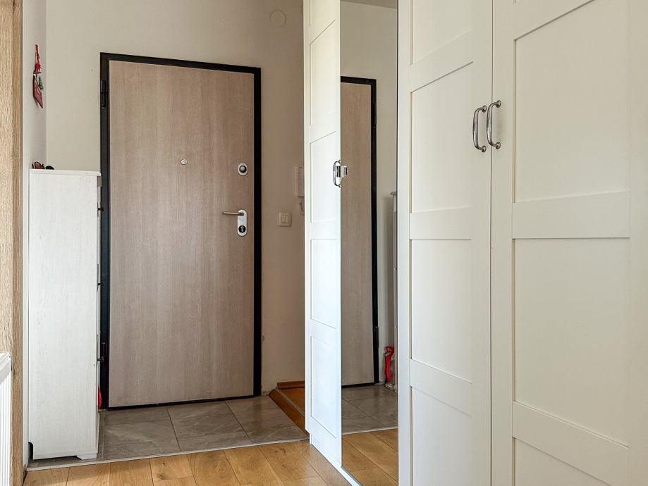 Stan se nalazi na 2. katu (bez lifta) manje stambene zgrade (ukupno 3 kata, 6 stanova), što osigurava dodatnu privatnost i ugodan ambijent stanovanja. Površina stana iznosi 54,37 m², uz dvije loggie površine 5,56 m², te pripadajuće vanjsko parkirno mjesto od 11,50 m², upisano u vlasnički list.