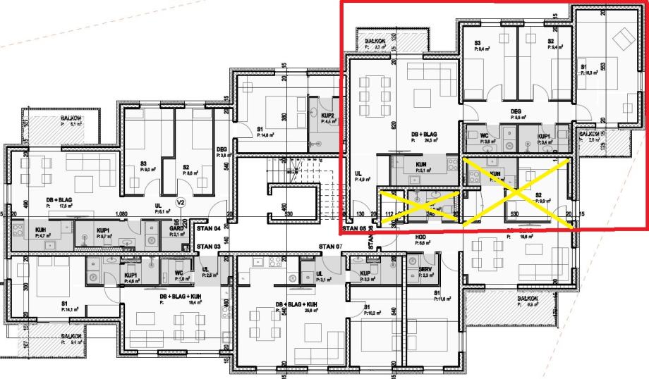 - SPREMIŠTA u prizemlju od 1,70m2, cijena____________ = 3.000€/m2