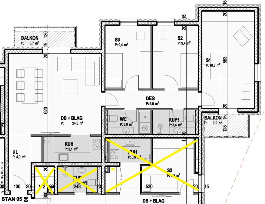 - Četverosoban stan na 1. katu orijentacije prema zapad sjever.