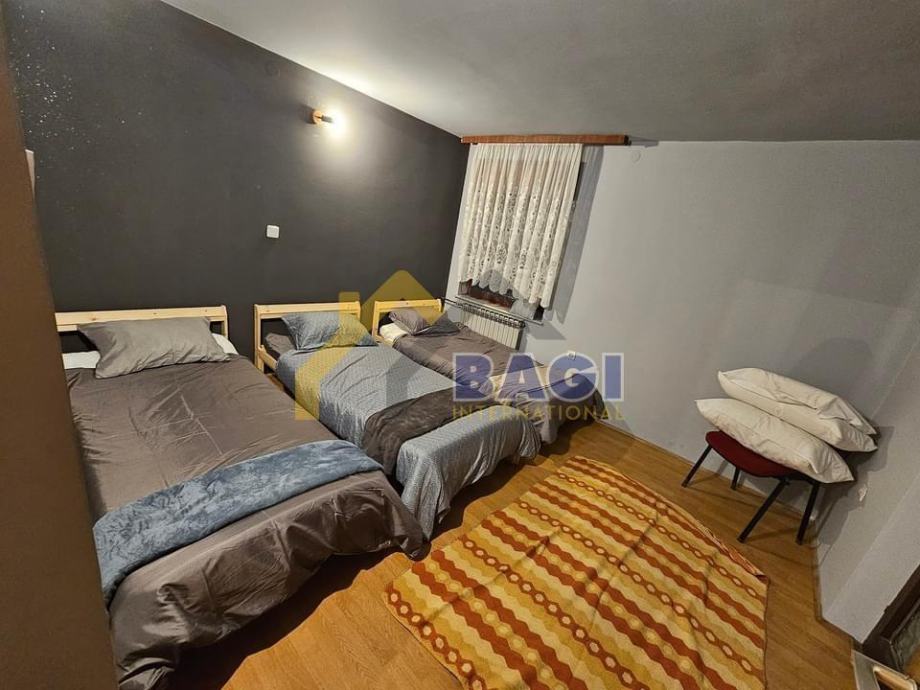 Kuća se sastoji od 6 soba - 5 spavaćih i 1 dnevne sobe, 2 kupaonice, 2 kuhinje i blagavaone, terase, hodnika i predsoblja.