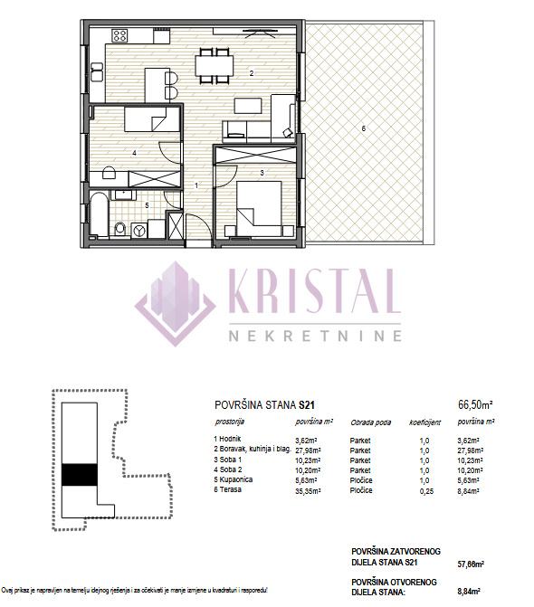 Sveukupna neto prodajna površina stana: 66.50 m2
