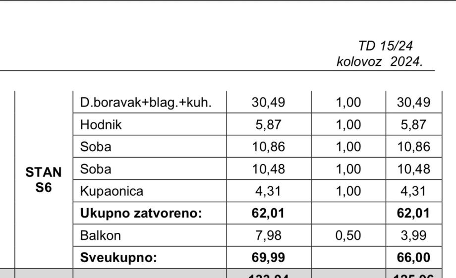 .Svekupns povrsina stana je 66m2, plus spremiste 3,44m2