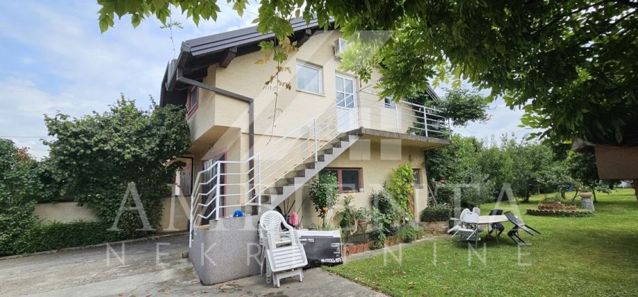 Opis: prodaje se zemljište od 1212m2 s dvije kuće, građene 1997. godine. Veća kuća sastoji se od visokog prizemlja od 140m2 u kojem su 2 spavaće sobe, kuhinja s blagovaonicom i dnevnim boravkom s izlazom na terasu od 12m2 te kupaonica, od kata od 140m2 istog rasporeda kao i v.prizemlje, te podruma od 80m2 s dva ulaza i kotlovnica. Kuća je izolirana 10cm stiropornom toplinskom fasadom, vanjska stolarija od PVC-a, priključena na struju, vodu, kanalizaciju i plin.