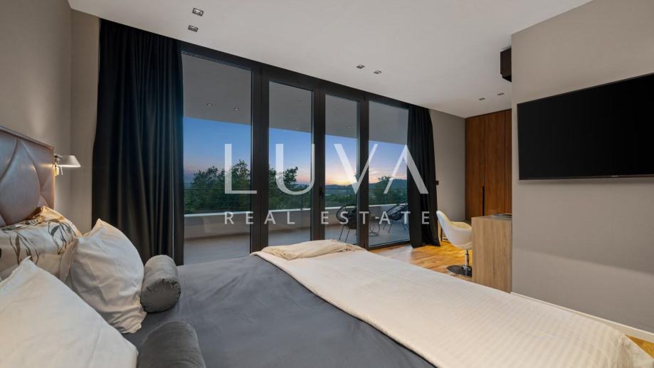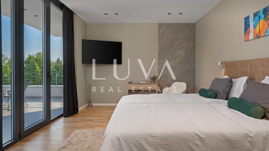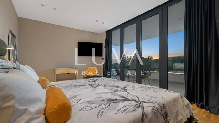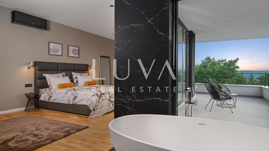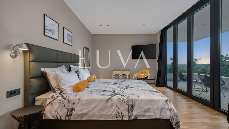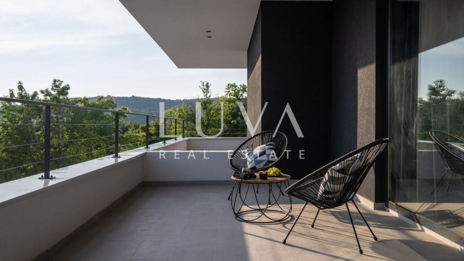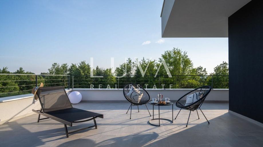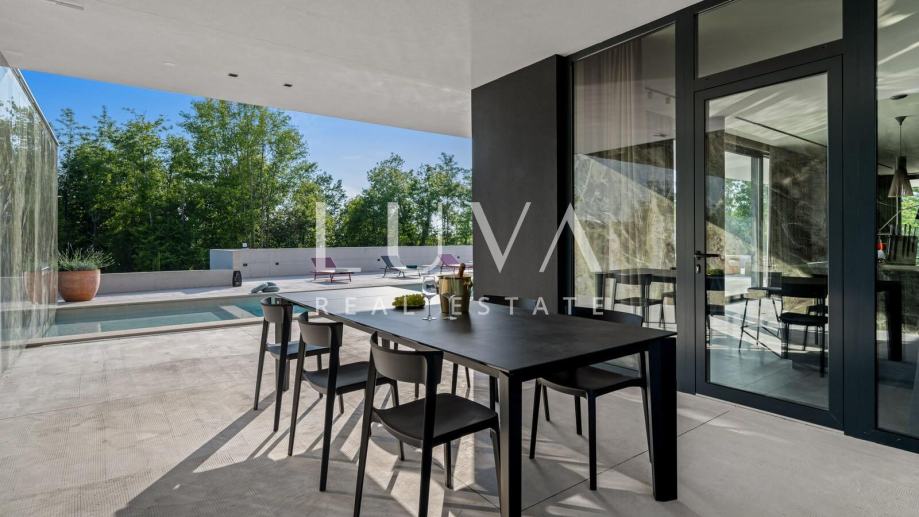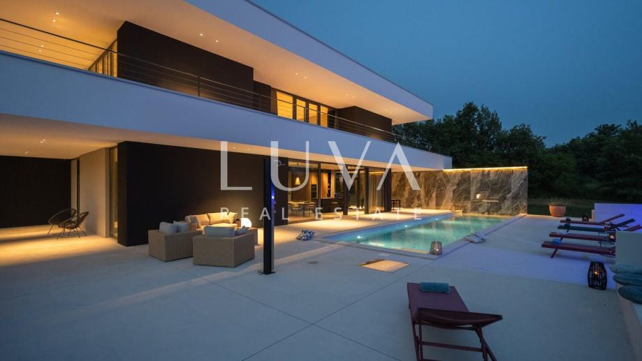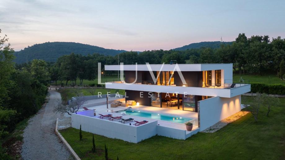 Prodaje se luksuzna vila s bazenom u malom mirnom mjestu Šterna na sjeveru Istre, u neposrednoj blizini Buja i Grožnjana. Vila je izgrađena 2024. godine, unutarnje površine je 300 m2 te se proteže na 2 etaže. U prizemlju vile se nalazi prostrani dnevni boravak spojen s potpuno opremljenom kuhinjom i modernim kaminom koji daje poseban šarm. Kroz velike staklene stijene se izlazi na vanjsku terasu ispred vile na kojoj se nalazi veliki vanjski bazen okružen ležaljkama i brojnim zelenilom. Vila ima 3 prostrane spavaće sobe s vlastitim kupaonicama i terasama. Vila je opremljena dizajnerskim namještajem kao što su Guzzini, Artemide, Ticino za rasvjetu, Florim Bologna za unutarnje i vanjske ploče zidova, Calligaris Italy namještaj..