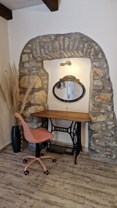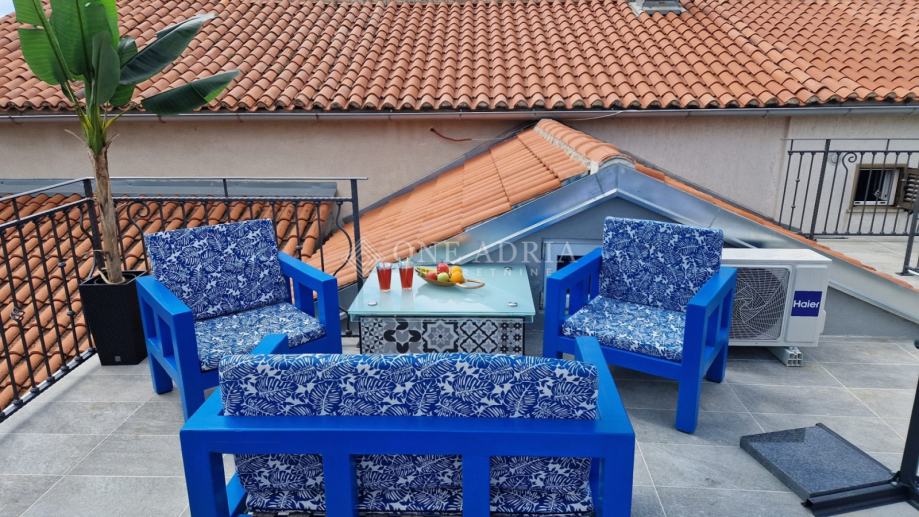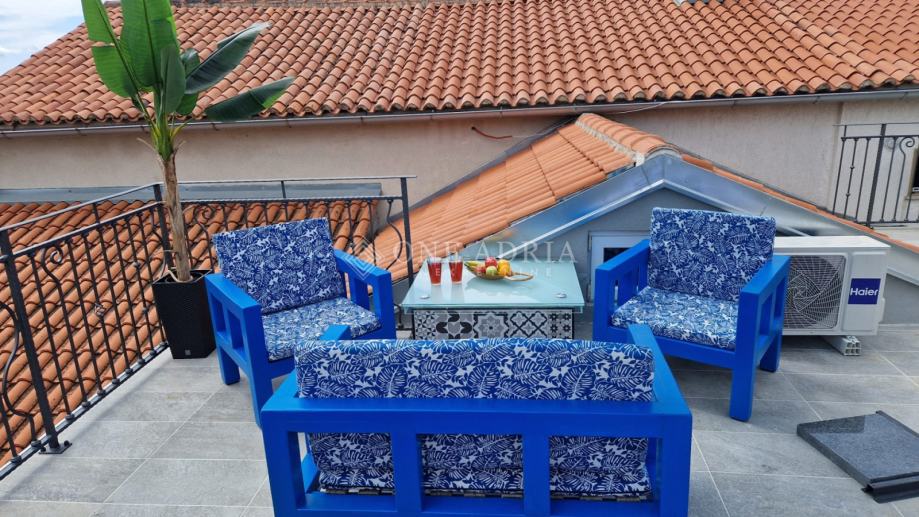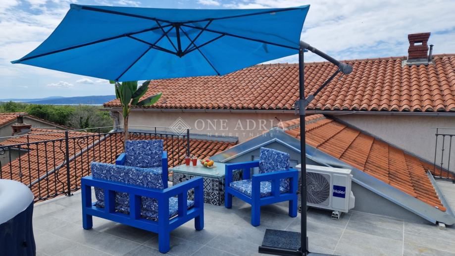 Posebnu vrijednost daje prostrana terasa površine 20 m², savršena za opuštanje, druženje ili objedovanje na otvorenom, s koje se pruža lijep pogled na more i okolni krajolik.